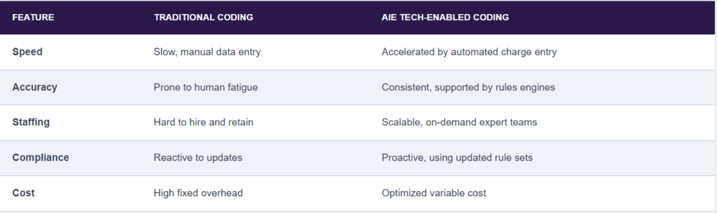 The AIE Advantage: Many providers are hesitant to trust their revenue solely to a “black box” algorithm. We understand that. That is why we are defined as the best company for medical coding services that utilize advanced technology to support, rather than replace, the human element.